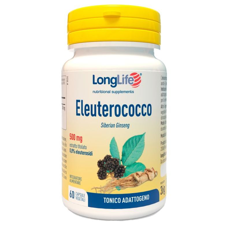 Eleuterococco radice e.s. (15:1) tit. 10% saponosidi totali (metodo UV) 0,8% eleuterosidi B+E (metodo HPLC) | 500 mg 50 mg 4 mg |
