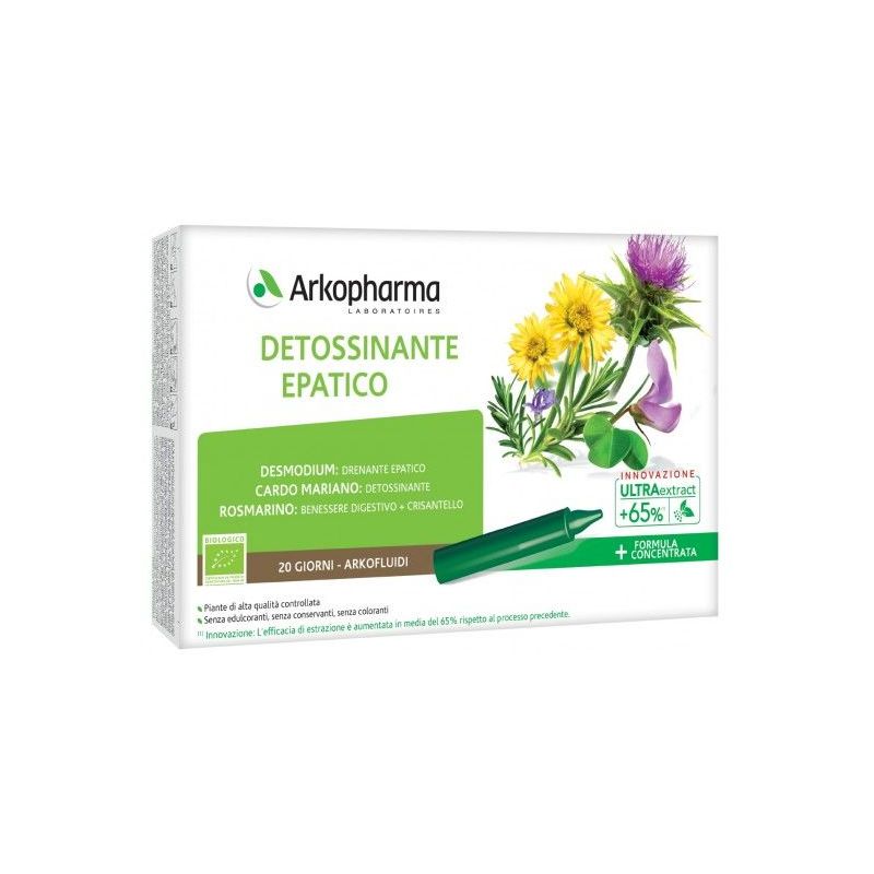 Ingredienti Estratto di piante [ottenuto da 450 mg di frutto di Cardo mariano* (Silybum marianum Gaertn.), 450 mg di foglia di Rosmarino* (Rosmarinus officinalis L.), 300 mg di parte aerea di Crisantello* (Chrysantellum indicum Subsp. afroamericanum B.L. Turner), 300 mg di foglia di Desmodium (Desmodium adscendens DC.) per unicadose], Succo concentrato di limone*.