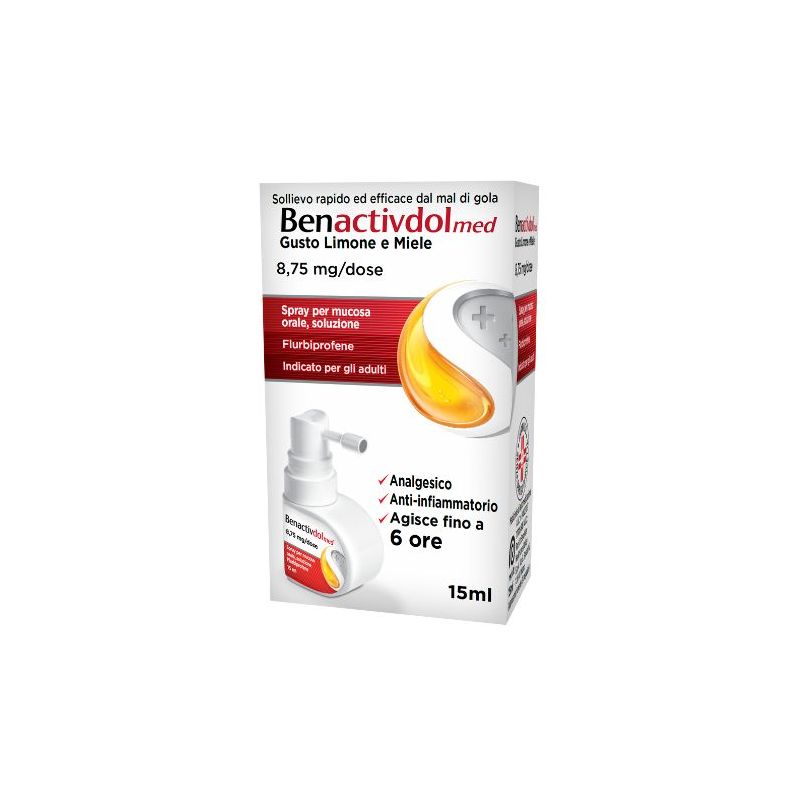 Posologia: Solo per trattamenti di breve durata. Adulti a partire dai 18 anni: una dose (3 spruzzi) somministrata nella parte posteriore della gola ogni 3-6 ore a seconda della necessità, fino ad un massimo di 5 dosi in un periodo di 24 ore. Popolazione pediatrica: La sicurezza e l’efficacia di Benactivdolmed nei bambini o adolescenti di età inferiore ai 18 anni non sono state stabilite. Pazienti anziani: Non può essere fornita una raccomandazione posologica generale, poiché ad oggi l’esperienza clinica è limitata. Gli anziani presentano un aumentato rischio di gravi conseguenze in caso di reazioni avverse. Si deve somministrare la più bassa dose efficace per la più breve durata di trattamento necessaria a controllare i sintomi (vedere paragrafo 4.4). Modo di somministrazione: Per somministrazione oromucosale. Non inalare durante l’erogazione. Questo medicinale deve essere utilizzato per un massimo di 3 giorni. Prima del primo utilizzo, attivare la pompa, puntando l’erogatore lontano dal proprio corpo e spruzzando per almeno quattro volte, fino ad ottenere il rilascio di una nebulizzazione fine e uniforme. La pompa è quindi attivata e pronta per l’uso. Tra un utilizzo e l’altro puntare l’erogatore lontano dal proprio corpo ed erogare una quantità minima di prodotto, al fine di assicurarsi che la nebulizzazione sia fine e uniforme. Prima dell’uso del prodotto assicurarsi sempre che la nebulizzazione sia fine e uniforme.