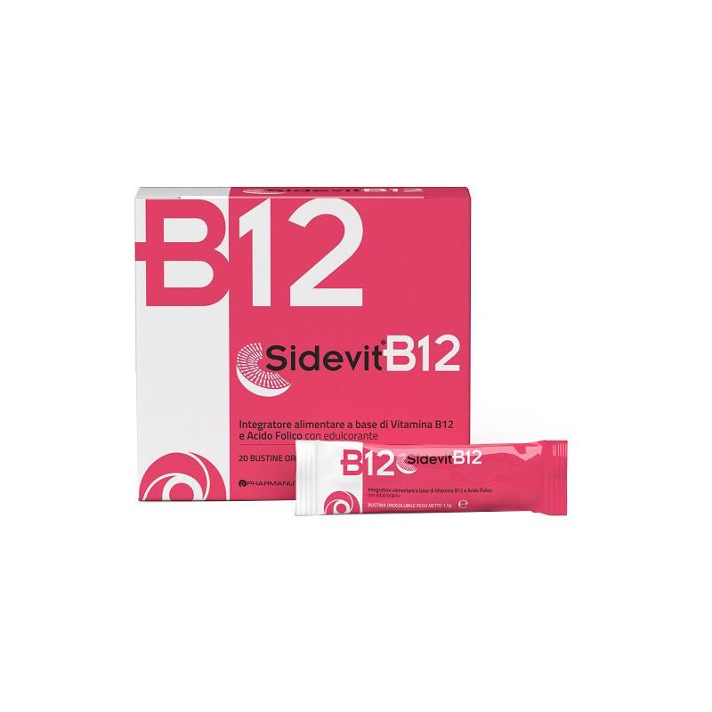 Descrizione Integratore alimentare a base di UltraB12-vitamina B12 sucrosomiale e acido folico (Quatrefolic), utile per colmare le carenze alimentari o gli aumentati fabbisogni organici di questi nutrienti. Sidevit B12, grazie alla presenza di vitamina B12 e acido folico, contribuisce alla riduzione di stanchezza ed affaticamento. Inoltre, grazie alla vitamina B12 contribuisce al normale metabolismo energetico.