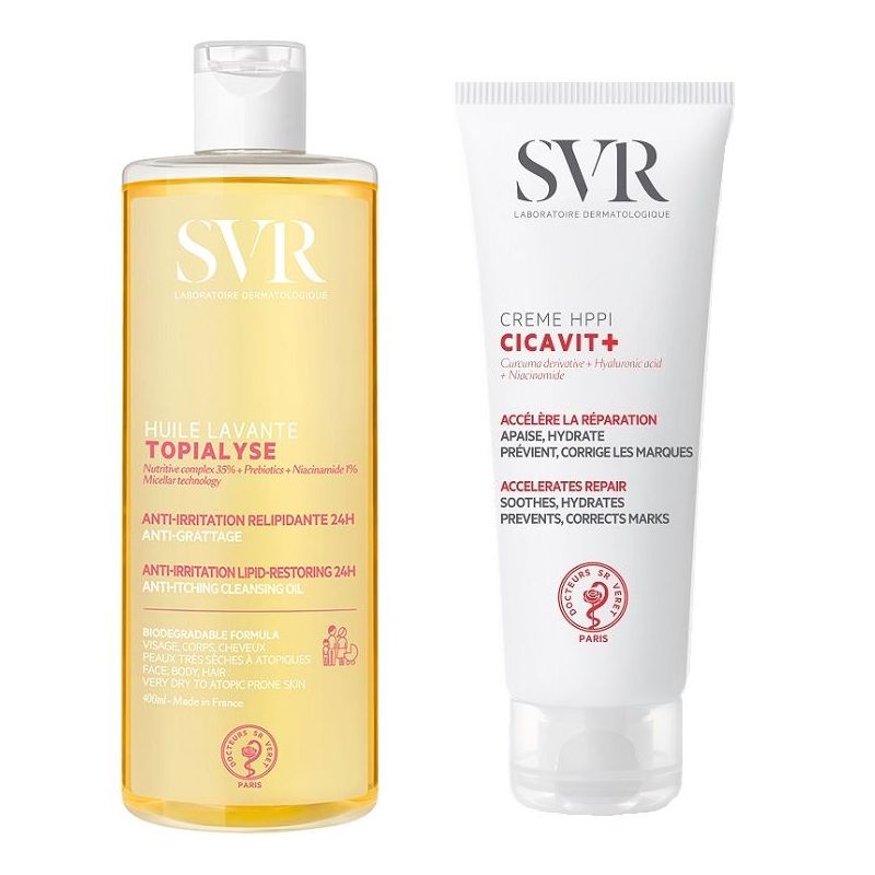 Set contenente SVR huile lavante topialyse e Cicavit creme HPPI.