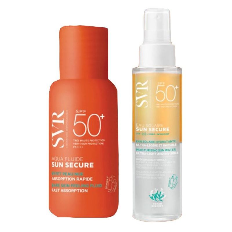 SUN SECURE SUMMER SET Descrizione Sun secure aqua fluide SPF 50+: texture ultra fluida con finish invisibile, ideale per l’uso quotidiano. Sensazione di pelle nuda. Testato in diverse condizioni climatiche (secco, tropicale), Idratante. Ottima base per il trucco. Delicata fragranza estiva. Non comedogenico. Senza octocrilene. Sun secure eau solaire SPF 50+: acqua solare idratante bifasica. Texture fresca e ultraleggera, finish invisibile ad assorbimento rapido. Modalità d’uso Sun secure aqua fluide SPF 50+: applicare uno strato di prodotto generoso ed uniforme su tutto il viso prima dell’esposizione al sole. Rinnovare frequentemente l’applicazione. Sun secure eau solaire SPF 50+: agitare prima dell’applicazione. Nebulizzare sulle mani prima di distribuirla sul viso. Rinnovare frequentemente l’applicazione. Componenti Sun secure aqua fluide SPF 50+: aqua/water, dicaprylyl carbonate, diethylamino hydroxybenzoyl hexyl benzoate, silica, caprylyl methicone, ethylhexyl triazone, diisopropyl adipate, bis-ethylhexyloxyphenol methoxyphenyl triazine, diethylhexyl butamido triazone, isopropyl lauroyl sarcosinate, beheneth-25, propanediol, pentylene glycol, acrylates/C12-22 alkyl methacrylate copolymer, niacinamide, cetearyl alcohol, coco-glucoside, parfum/fragrance, 1,2-hexanediol, caprylyl glycol, glycerin, arginine, bentonite, maltodextrin, citric acid, tocopherol, xanthan gum, disodium lauryl sulfosuccinate, Epilobium angustifolium flower/leaf/stem extract, Helianthus annuus (sunflower) seed oil, lecithin, Lepidium ativum sprout extract. Sun secure eau solaire SPF 50+: aqua (water), dicaprylyl carbonate, coco-caprylate/caprate, diethylamino hydroxybenzoyl hexyl benzoate, bis-ethylhexyloxyphenol methoxyphenyl triazine, dicaprylyl ether, diisopropyl adipate, ethylhexyl triazone, niacinamide, sodium chloride, Bixa orellana seed extract, Glycine soja (soybean) oil, hexylene glycol, Lepidiuim sativum sprout extract, Helianthus annuus (sunflower) seed oil, tocopherol, caprylic/capric triglyceride, citric acid, coco-betaine, potassium sorbate, sodium benzoate, parfum/fragrance. Avvertenze Non esporre i neonati e i bambini alla luce diretta del sole. Conservazione Sun secure aqua fluide SPF 50+: validità post-apertura: 12 mesi. Sun secure eau solaire SPF 50+: validità post-apertura: 6 mesi. Formato Sun secure aqua fluide SPF 50+: flacone da 50 ml. Sun secure eau solaire SPF 50+: flacone da 100 ml. Cod.